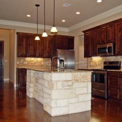 ButtonThis is a new construction, custom home built by Wayne and Alicia Larsen. The stain is Butterfield Color Kona Brown. The entire living space is stained.
